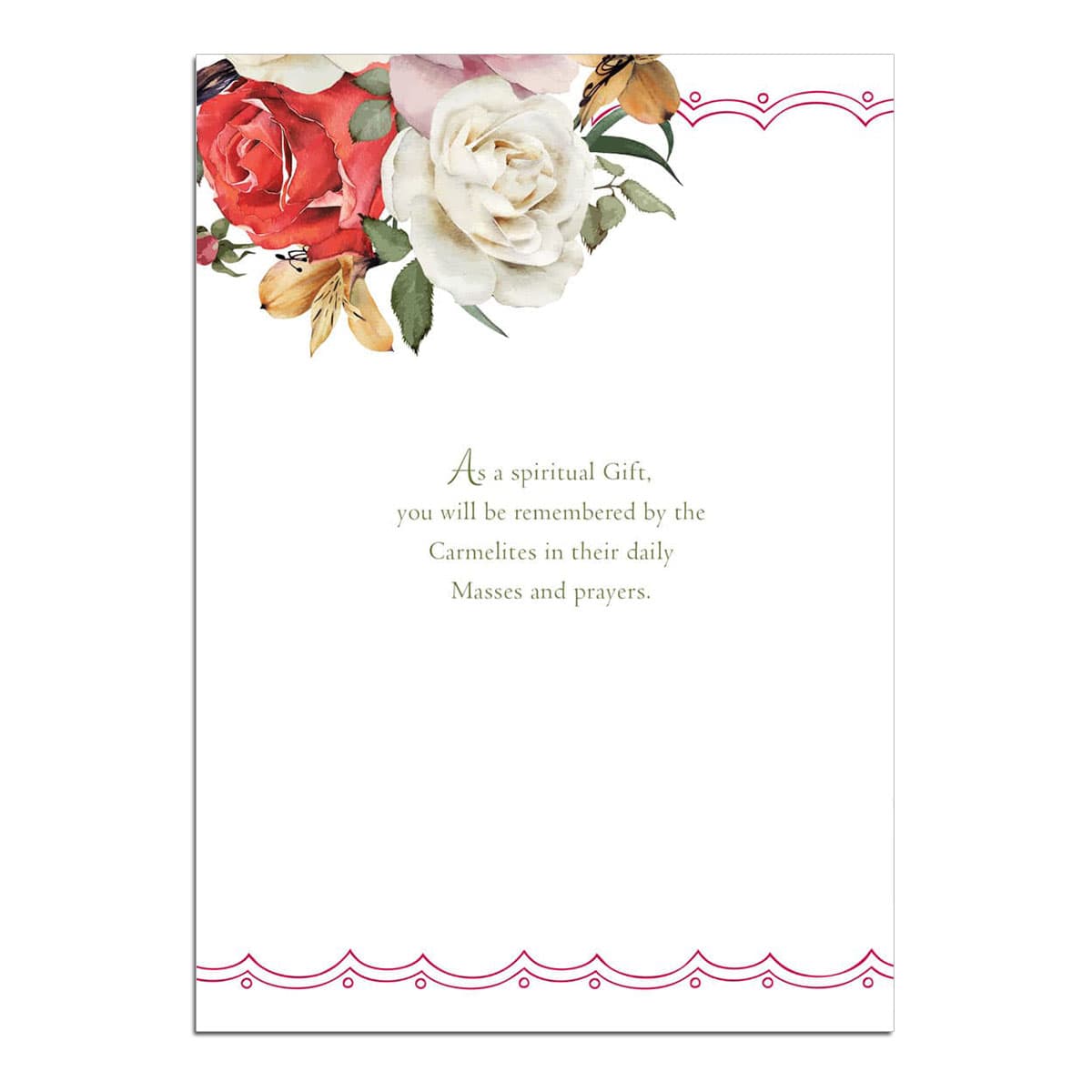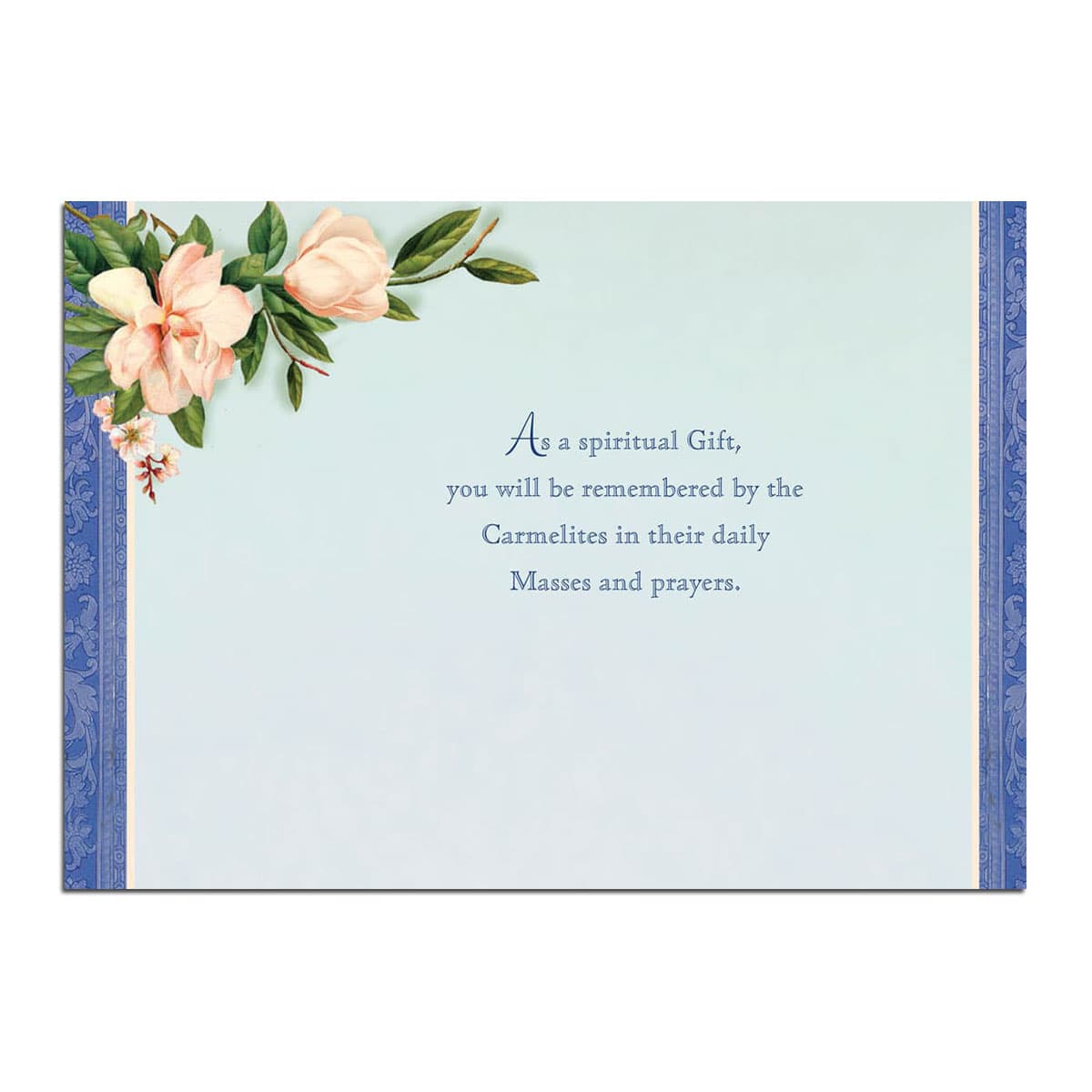The Society can send a Mass card on your behalf and that person or family will. A memorial mass card enrolls a deceased person in the society of the little flower for a period of five years.